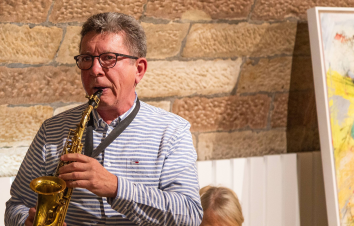 Bildende Kunst hervorragend umrahmt von den virtuosen Darbietungen auf dem Marimbaphon von Felix Zeller und den ebenso spannenden und pointierten Glossen von Markus B. Altmeyer